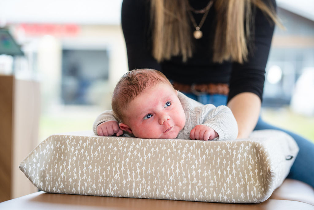 If appropriate, we may perform a gentle first adjustment using: extremely light pressure, calm, slow movements, and positioning comfortable for baby (often in parent's arms).
